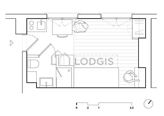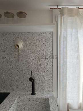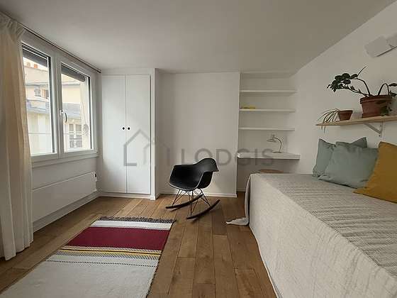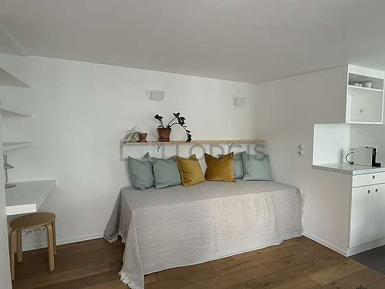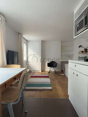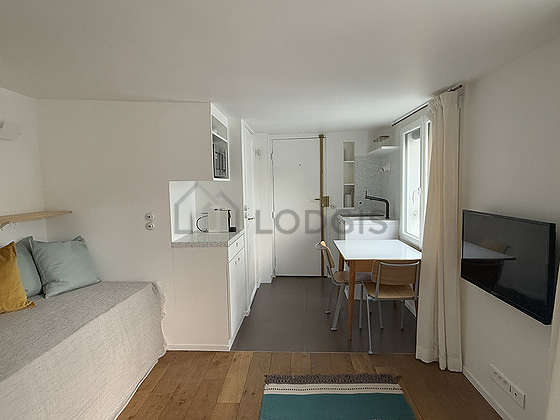 SoggiornoQuesto appartamento é composto di un piacevole salone con del parquet al suolo vista su cortile. Questo salone calmo é ammobiliato e equipaggiato per rendere il tuo soggiorno piacevole : televisione, 1 poltrona (e), tavola da pranzo, tavolino, scrivania, guardaroba, biblioteca, scaffale, armadio, 2 sedia (e), curtains1 divano letto.