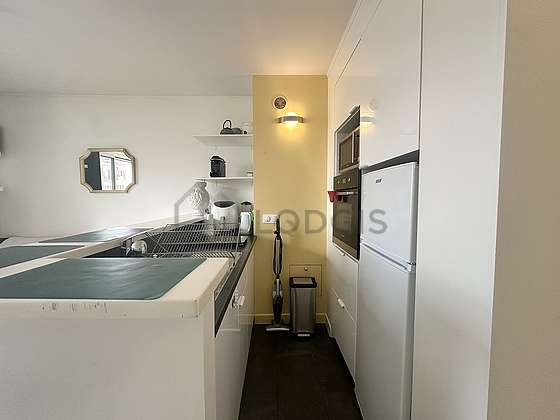 Questo appartamento dispone di una bella cucina con del piastrelle al suolo e tutto l'equipaggiamento indispensabile per la vita quotidiana : piani di cottura, frigorifero, congelatore, forno, forno microonde, bollitore elettrico, caffettiera, armadio, 1 sedia (e), bar, sink.