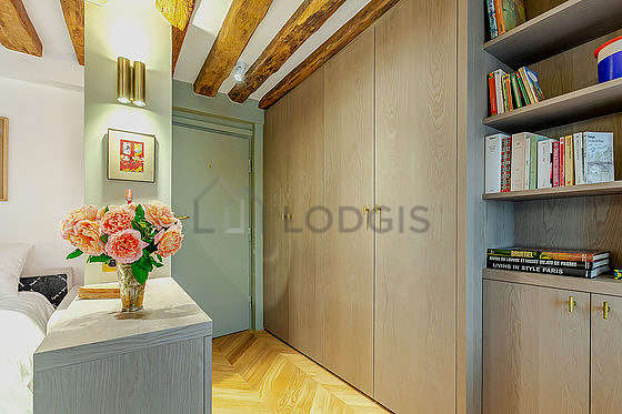 SoggiornoQuesto appartamento é composto di un piacevole salone con del parquet al suolo e delle finestras anti-rumore. Questo salone calmo é ammobiliato e equipaggiato per rendere il tuo soggiorno piacevole : televisione, lenzuola, coperte, congelatore, aspirapolvere, divano, tavola da pranzo, tavolino, scrivania, biblioteca, scaffale, armadio, como', credenza, stoviglie, trave, 1 sedia (e), comodino, tv stand, mirror, pouffe, painting, carpet, vase1 divano letto.