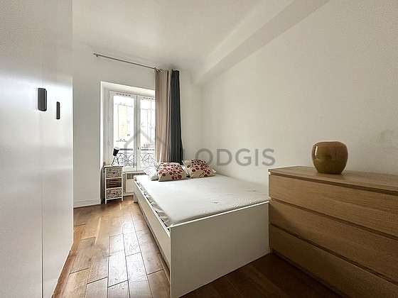 Con del parquet al suolo e delle finestras e vista su strada, questa camera attraente offre l'equipaggiamento necessario per riposarti durante il tuo soggiorno : lenzuola, guardaroba, armadio, como', comodino, floor lamp, bin, carpet, vase1 letto.