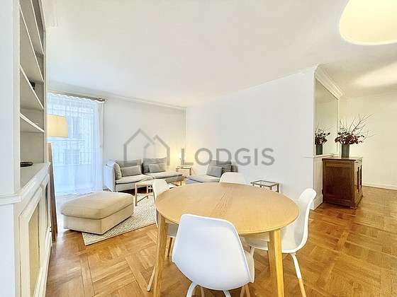 Questo appartamento é composto di un salone con del parquet al suolo e delle finestras con balcon. Questo salone calmo é ammobiliato e equipaggiato per rendere il tuo soggiorno piacevole : divano, 1 poltrona (e), tavola da pranzo, tavolino, 4 sedia (e), floor lamp, lamp, carpet.