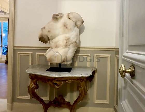 Questo appartamento dispone ugualmentea entrata dotata de wall light, entry way table, chandelier, mirror.