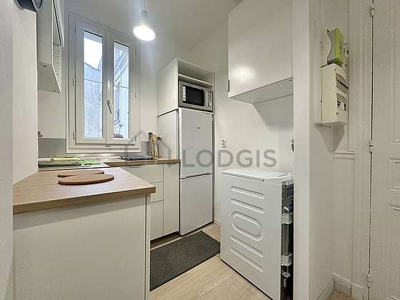 Questo appartamento dispone di una bella cucina con del parquet al suolo e tutto l'equipaggiamento indispensabile per la vita quotidiana : piani di cottura, frigorifero, congelatore, forno microonde, tostapane, bollitore elettrico, caffettiera, armadio, sink, bin.