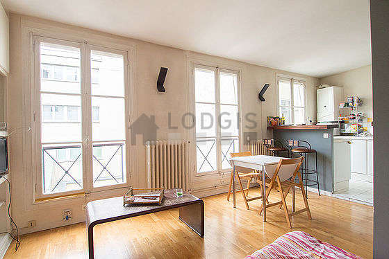 Questo appartamento é composto di un magnifico salone con del parquet al suolo e delle finestras e vista su cortile. Questo salone molto calmo é ammobiliato e equipaggiato per rendere il tuo soggiorno piacevole : televisione, tavola da pranzo, tavolino, guardaroba, scaffale, armadio1 futon.