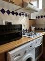 Questo appartamento dispone di una bella cucina con del piastrelle al suolo e tutto l'equipaggiamento necessario per la vita quotidiana : piani di cottura, frigorifero, congelatore, forno, forno microonde, cappa di aspirazione, tostapane, bollitore elettrico, caffettiera, scaffale, armadio, stoviglie.
