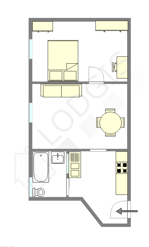 Questo appartamento é composto di un attraente salone con del parquet al suolo e delle finestras anti-rumore e vista su cortile. Questo salone calmo é ammobiliato e equipaggiato per rendere il tuo soggiorno piacevole : televisione, tavola da pranzo, tavolino, scaffale, 4 sedia (e)1 divano letto.
