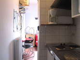 Questo appartamento dispone di una cucina con della coccio al suolo e tutto l'equipaggiamento essenziale per la vita quotidiana : piani di cottura, frigorifero, forno microonde, congelatore, cappa di aspirazione, tostapane, bollitore elettrico, caffettiera, armadio, stoviglie.