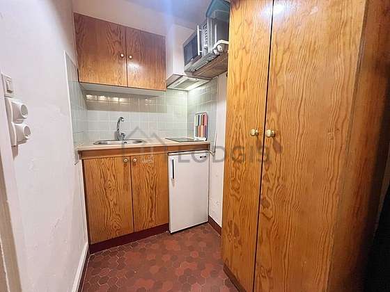 Questo appartamento dispone di una cucina con del piastrelle al suolo e tutto l'equipaggiamento necessario per la vita quotidiana : piani di cottura, frigorifero, forno, caffettiera, armadio, stoviglie.