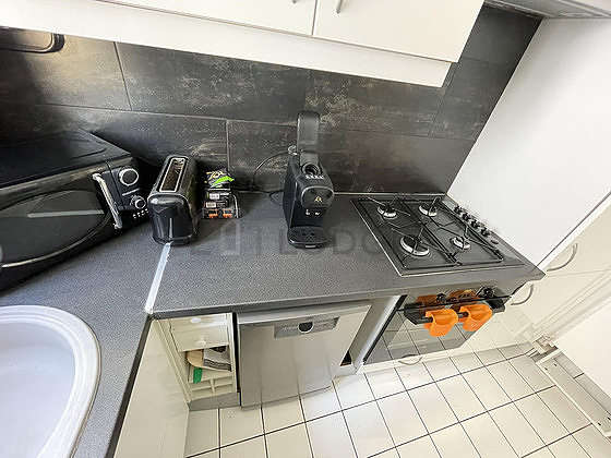 Questo appartamento dispone di una bella cucina con del piastrelle al suolo e tutto l'equipaggiamento necessario per la vita quotidiana : piani di cottura, frigorifero, forno microonde, congelatore, tostapane, bollitore elettrico, caffettiera, armadio, stoviglie, sgabello, bar.