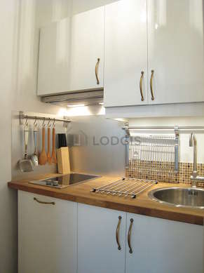 Questo appartamento dispone di una magnifica cucina con del parquet al suolo e tutto l'equipaggiamento necessario per la vita quotidiana : piani di cottura, frigorifero, congelatore, microonde multifunzione, cappa di aspirazione, tostapane, bollitore elettrico, caffettiera, armadio, stoviglie.