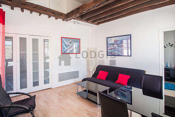 Questo appartamento é composto di un attraente salone con del parquet al suolo e delle finestras anti-rumore e vista su cortile. Questo salone molto calmo é ammobiliato e equipaggiato per rendere il tuo soggiorno piacevole : televisione, 1 poltrona (e), tavola da pranzo, tavolino, scrivania, guardaroba, scaffale, armadio, 4 sedia (e)1 futon.