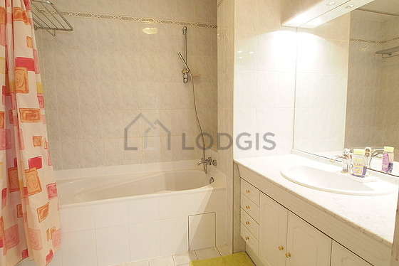 Questo appartamento é equipaggiato di un bagno piacevole. Questo bagno é dotato di tutto il necessario per il tuo benessere quotidiano : asciugamani da bagno, armadio, vasca da bagno, asciugacapelli, radiatore porta asciugamani. Il WC é separato dal bagno ed é situato in un locale indipendente.