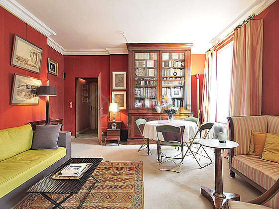 Questo appartamento é composto di un salone con della moquette al suolo e delle finestras anti-rumore e vista su cortile. Questo salone calmo é ammobiliato e equipaggiato per rendere il tuo soggiorno piacevole : divano, 2 poltrona (e), tavola da pranzo, tavolino, biblioteca, scaffale, armadio, 4 sedia (e)1 divano letto.