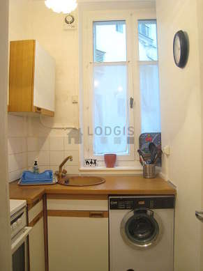 Questo appartamento dispone di una cucina con del linoleum al suolo e tutto l'equipaggiamento indispensabile per la vita quotidiana : piani di cottura, frigorifero, congelatore, forno, forno microonde, bollitore elettrico, caffettiera, armadio, stoviglie.