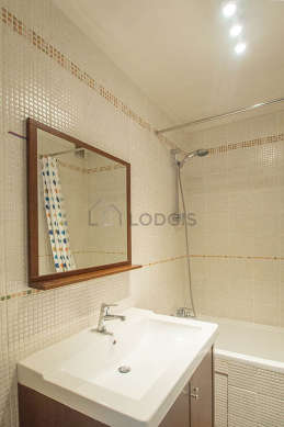 Questo appartamento é equipaggiato di un bagno piacevole e chiaro. Questo bagno é dotato di tutto il necessario per il tuo benessere quotidiano : asciugamani da bagno, scaffale, armadio, vasca da bagno, radiatore porta asciugamani. Il WC é separato dal bagno ed é situato in un locale indipendente.