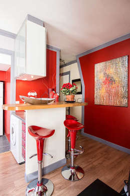 Questo appartamento dispone di una bella cucina con del piastrelle al suolo e tutto l'equipaggiamento indispensabile per la vita quotidiana : piani di cottura, frigorifero, congelatore, forno, forno microonde, cappa di aspirazione, tostapane, bollitore elettrico, caffettiera, armadio, stoviglie, sgabello, bar.