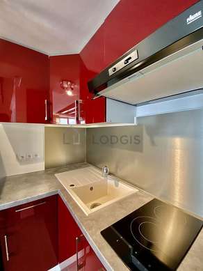 Questo appartamento dispone di una cucina con del piastrelle al suolo e tutto l'equipaggiamento indispensabile per la vita quotidiana : piani di cottura, frigorifero, congelatore, tostapane, bollitore elettrico, caffettiera, armadio, stoviglie.