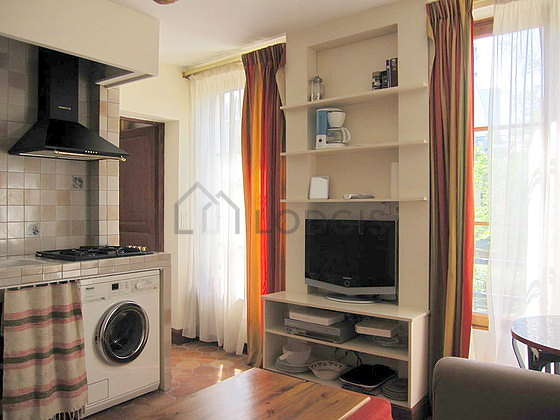 Questo appartamento é composto di un attraente salone con della coccio al suolo e delle finestras anti-rumore e vista su cortile. Questo salone molto calmo é ammobiliato e equipaggiato per rendere il tuo soggiorno piacevole : televisione, lenzuola, coperte, tavolino, guardaroba, scaffale, armadio, sgabello1 divano letto.