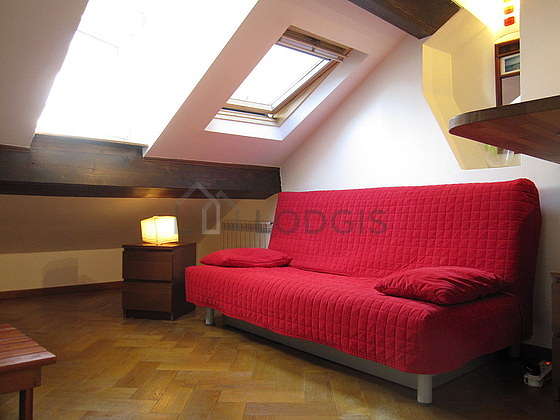 Questo appartamento é composto di un attraente salone con del parquet al suolo e delle finestras anti-rumore e vista su strada. Questo salone calmo é ammobiliato e equipaggiato per rendere il tuo soggiorno piacevole : televisione, lenzuola, coperte, tavolino, guardaroba, armadio, 2 sedia (e)1 divano letto.