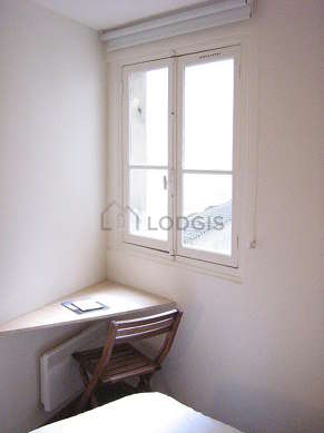 Con del parquet al suolo e delle finestras e vista su cortile, questa camera attraente offre l'equipaggiamento necessario per riposarti durante il tuo soggiorno : lenzuola, coperte, scrivania, guardaroba, scaffale, 1 sedia (e), comodino1 letto.