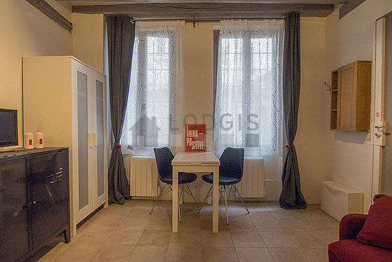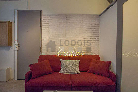 Questo appartamento é composto di un piacevole salone con del piastrelle al suolo e delle finestras e vista su cortile. Questo salone calmo é ammobiliato e equipaggiato per rendere il tuo soggiorno piacevole : televisione, lenzuola, tavola da pranzo, tavolino, scaffale, armadio, 2 sedia (e)1 divano letto.