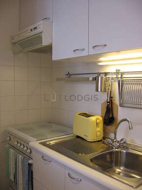 Questo appartamento dispone di una magnifica cucina con del piastrelle al suolo e tutto l'equipaggiamento essenziale per la vita quotidiana : piani di cottura, frigorifero, congelatore, forno, tostapane, bollitore elettrico, caffettiera, scaffale, armadio, stoviglie, sgabello, bar.