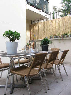 TerrazzoCon del piastrelle al suolo la terrazza esposta pieno sud di questo appartamento ti sedurrà. Questo spazio esterno luminoso e fornito di tavola da pranzo, 8 sedia (e) sarà un vero "plus"per tuo soggiorno a Parigi, soprattutto durante le belle giornate.