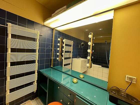 Questo appartamento é equipaggiato di un bagno piacevole. Questo bagno é dotato di tutto il necessario per il tuo benessere quotidiano : asciugamani da bagno, armadio, vasca da bagno, asciugacapelli, radiatore porta asciugamani. Il WC é separato dal bagno ed é situato in un locale indipendente.