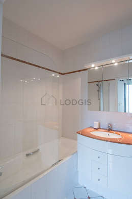 Questo appartamento é equipaggiato di un bagno piacevole. Questo bagno é dotato di tutto il necessario per il tuo benessere quotidiano : asciugamani da bagno, armadio, vasca da bagno, asciugacapelli, radiatore porta asciugamani. Il WC é integrato nel bagno