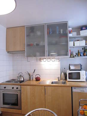 Questo appartamento dispone di una bella cucina con del piastrelle al suolo e tutto l'equipaggiamento indispensabile per la vita quotidiana : piani di cottura, frigorifero, forno, forno microonde, congelatore, cappa di aspirazione, tostapane, bollitore elettrico, tavola da pranzo, scaffale, armadio, stoviglie, 3 sedia (e).