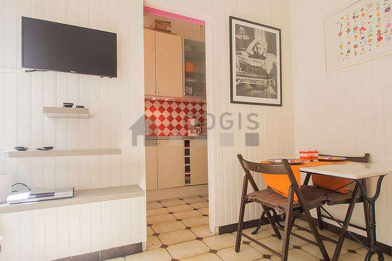 Questo appartamento é composto di un salone con del piastrelle al suolo e delle finestras anti-rumore e vista su strada. Questo salone calmo é ammobiliato e equipaggiato per rendere il tuo soggiorno piacevole : televisione, lenzuola, coperte, tavola da pranzo, 4 sedia (e)1 divano letto.