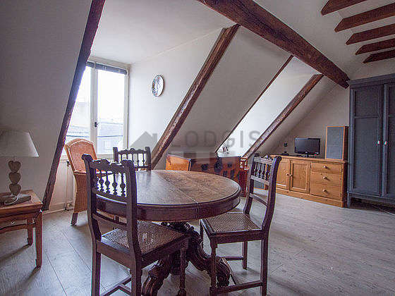 SoggiornoQuesto appartamento é composto di un salone con del parquet al suolo e delle finestras e vista su strada. Questo salone molto calmo é ammobiliato e equipaggiato per rendere il tuo soggiorno piacevole : televisione, tavola da pranzo, tavolino, guardaroba, credenza, armadio, 4 sedia (e)1 divano letto.