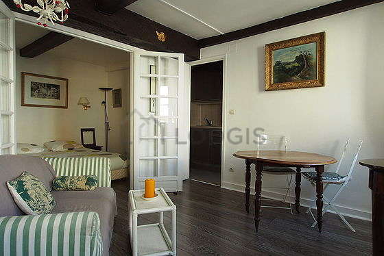 Questo appartamento é composto di un attraente salone con del parquet al suolo e delle finestras anti-rumore e vista su strada. Questo salone calmo é ammobiliato e equipaggiato per rendere il tuo soggiorno piacevole : televisione, divano, 1 poltrona (e), tavola da pranzo, tavolino, scrivania, como', 2 sedia (e).