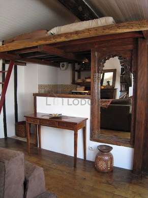 Grazie a una bella altezza del soffitto, si é potuto montare un soppalco in questo appartamento , offrendoti cosi un locale in più dotata de lenzuola, coperte.