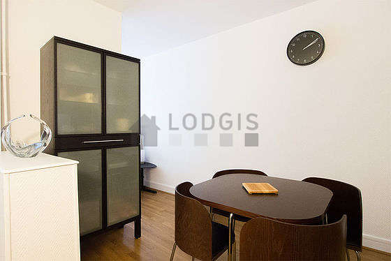Questo appartamento é composto di un attraente salone con del parquet al suolo e delle finestras anti-rumore e vista su strada. Questo salone calmo é ammobiliato e equipaggiato per rendere il tuo soggiorno piacevole : televisione, lenzuola, coperte, tavola da pranzo, tavolino, scrivania, guardaroba, armadio, 5 sedia (e)1 divano letto.