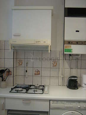 Questo appartamento dispone di una bella cucina con del piastrelle al suolo e tutto l'equipaggiamento indispensabile per la vita quotidiana : piani di cottura, frigorifero, congelatore, forno microonde, cappa di aspirazione, tostapane, bollitore elettrico, caffettiera, tavola da pranzo, scaffale, armadio, stoviglie.