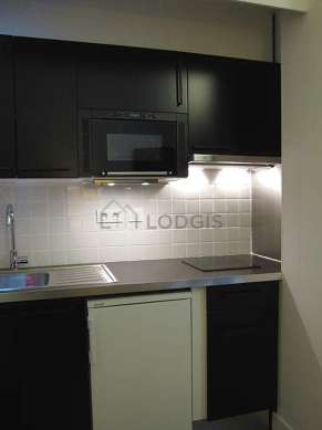 Questo appartamento dispone di una bella cucina con del linoleum al suolo e tutto l'equipaggiamento essenziale per la vita quotidiana : piani di cottura, frigorifero, microonde multifunzione, congelatore, cappa di aspirazione, tostapane, bollitore elettrico, armadio, stoviglie.