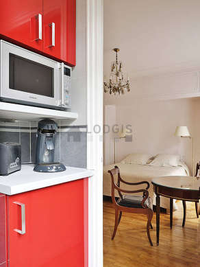Questo appartamento é composto di un superbo salone con del parquet al suolo e delle finestras anti-rumore e vista su giardino. Questo salone molto calmo é ammobiliato e equipaggiato per rendere il tuo soggiorno piacevole : televisione, lenzuola, coperte, 2 poltrona (e), tavola da pranzo, scrivania, guardaroba, scaffale, como', armadio, 2 sedia (e)1 letto.