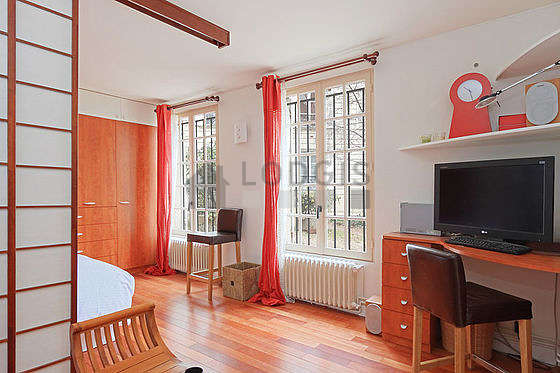 Questo appartamento é composto di un magnifico salone con del parquet al suolo e delle finestras e vista su cortile. Questo salone molto calmo é ammobiliato e equipaggiato per rendere il tuo soggiorno piacevole : televisione, lenzuola, coperte, tavolino, scrivania, armadio, 1 sedia (e)1 divano letto.
