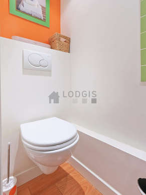 Questo appartamento é equipaggiato di un bagno magnifica. Questo bagno é dotato di tutto il necessario per il tuo benessere quotidiano : asciugamani da bagno, scaffale, doccia, asciugacapelli, radiatore porta asciugamani. Il WC é separato dal bagno ed é situato in un locale indipendente.