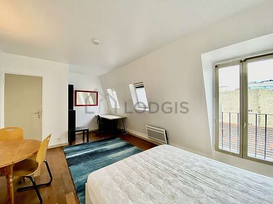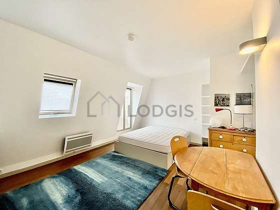 Questo appartamento é composto di un attraente salone con del parquet al suolo e delle finestras anti-rumore e vista su strada. Questo salone calmo é ammobiliato e equipaggiato per rendere il tuo soggiorno piacevole : televisione, lenzuola, coperte, divano, tavola da pranzo, tavolino, guardaroba, scaffale, como', armadio, 2 sedia (e), sgabello, comodino1 divano letto(s), 1 letto.