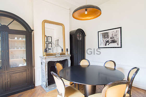 Per condividere un pasto conviviale durante il tuo soggiorno a Parigi, questo appartamento dispone di una piacevole sala da pranzo che puo' accogliere fino a 9 ospiti grazie a tavola da pranzo, credenza, stoviglie, 9 sedia (e).