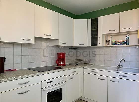 Questo appartamento dispone di una cucina e tutto l'equipaggiamento necessario per la vita quotidiana : piani di cottura, frigorifero, congelatore, microonde multifunzione, cappa di aspirazione, caffettiera, armadio, sgabello, work surface.