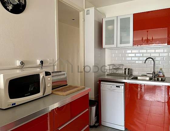 Questo appartamento dispone di una bella cucina e tutto l'equipaggiamento essenziale per la vita quotidiana : piani di cottura, frigorifero, congelatore, forno, forno microonde, cappa di aspirazione, tostapane, bollitore elettrico, caffettiera, scaffale, armadio, stoviglie, bar.