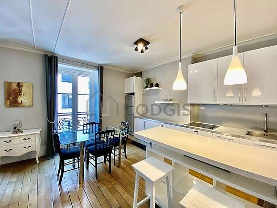 窓 - 通り が見える眺め - オープンキッチン - ウッドフロアー