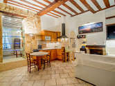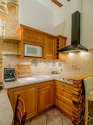 料理加熱台 - 冷蔵庫 - 冷凍庫 - 電子レンジオーブン - 製氷室 - 換気扇 - トースター - やかん - コーヒーメーカー - ダイニングテーブル - 棚 - 食器類 - 木の梁 - 2 椅子
