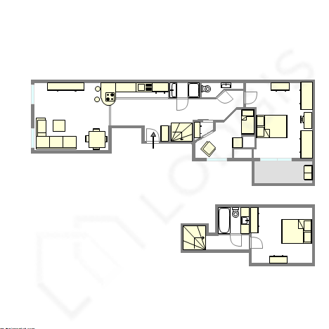料理加熱台 - 冷蔵庫 - 冷凍庫 - オーブン - 電子レンジ - 換気扇 - トースター - コーヒーメーカー - クローゼット - 食器類 - スツール - バー