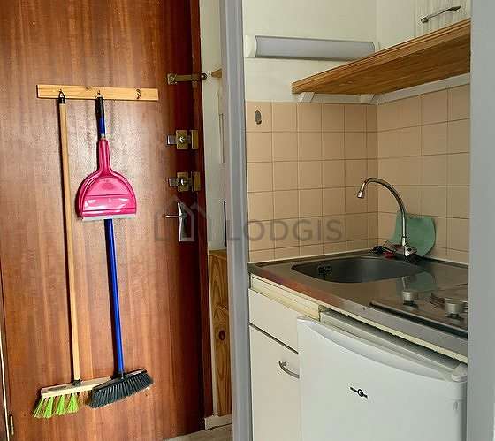 料理加熱台 - 冷蔵庫 - 電子レンジ - 製氷室 - 棚 - 食器類 - soup plates - dessert plates - plates - bowl - casserole dish - lid - cutlery - hot plate - peeler - ladle - mugs - tin opener - sieve - stove - bin - salad mixer - water glass