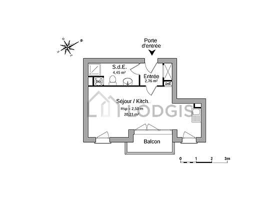 Este apartamento é equipado de uma casa de banho. Esta sala de água dispõe do necessário pelo seu bem estar na sua vida quotidiana. Os WC são separados da casa de banho e situados em uma peça independente.