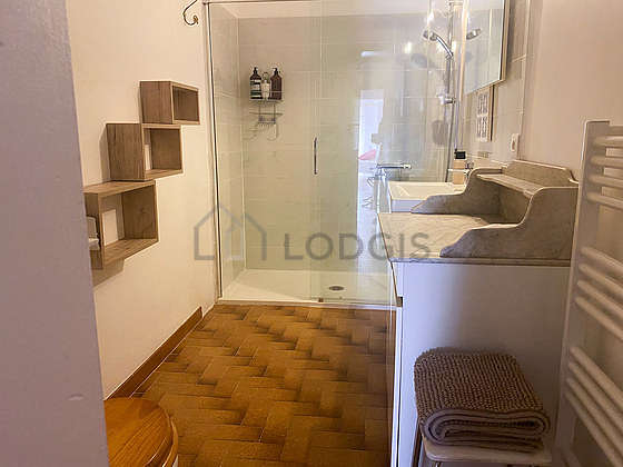 Esta casa é equipada de uma casa de banho. Esta sala de água dispõe do necessário pelo seu bem estar na sua vida quotidiana : toalhas de banho, ducheiro separado, radiator secador de toalhas. Os WC são integrados na casa de banho.